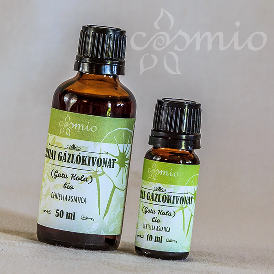 Bio ázsiai gázlókivonat. Az ázsiai gázló, más néven gotu kola növény (Centella asiatica) virágos hajtásából készült vizes-alkoholos-glicerines kivonat, ellenőrzött ökológiai gazdálkodásból. A kivonatot az alkohol és glicerin tartalom együttesen, hozzáadott tartósítószer nélkül konzerválja.